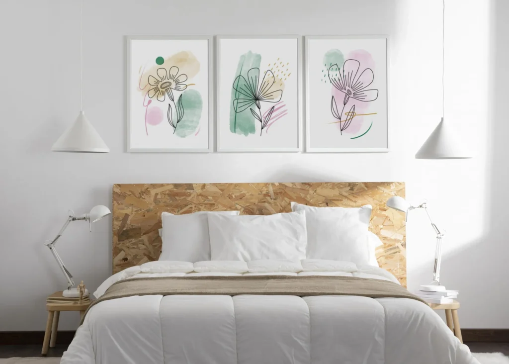 Ilustrasi botanical dan floral semakin digemari untuk kamar tidur modern. Gambar tanaman atau bunga membawa elemen alami yang segar dan hidup.