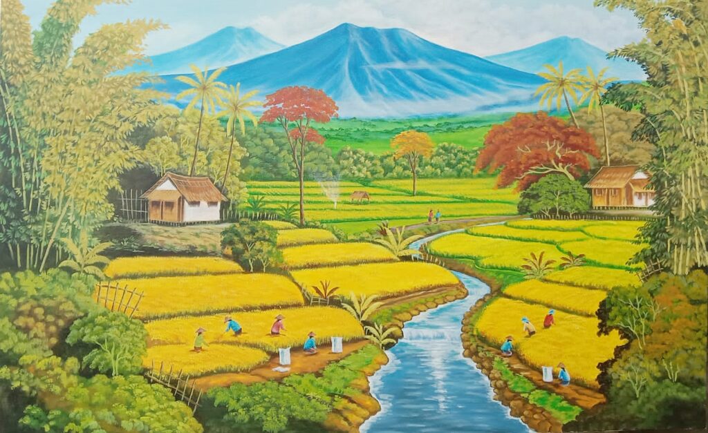 Pengertian Lukisan Pemandangan Alam Gunung dan Sawah